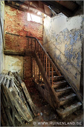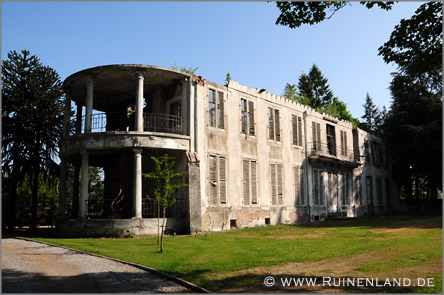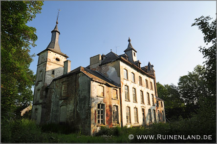 Der Zugang zum letzten Schloss unserer Reise war unerwartet einfach, ein Anwohner erlaubte uns ausnahmsweise das Betreten des Grundstücks und öffnete uns für Außenaufnahmen das Tor. Im Inneren gab es allerdings auch nichts mehr als kahle Mauern, wie wir durch die rückseitig gänzlich offenen Fensterhöhlen gut sehen konnten. Bereits 1312 stand hier ein Kloster, das im 18. Jahrhundert zum Schloss umgebaut wurde. 1974 wurde das Kasteel van Henegouw durch einen Brand zerstört und ist seitdem Ruine.