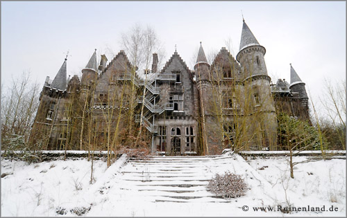 Nach einer Stunde durchfuhren wir die belgischen Ardennen. Der stellenweise unberührte Schnee auf den Straßen machte deutlich, dass hier schon einige Zeit niemand mehr gefahren war, was allerdings auch mein Vorankommen erschwerte. Das nächste "Objekt unserer Begierde" hatte ich bereits vor zweieinhalb Jahren besucht, doch damals war es mir aufgrund eines zu wachsamen Försters nicht möglich, das Anwesen zu betreten. So hoffte ich, diesmal mehr Glück zu haben.