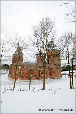 Der Tag war noch jung und durch die beiden bisherigen Misserfolge hatten wir noch weitaus mehr Zeit zur Verfügung, als ursprünglich gedacht. Aus diesem Grund machten wir einen kleinen Umweg und legten einen Stopp bei der Burg von Beersel ein. Auch sie war in den Wintermonaten nur an wenigen Tagen zugänglich, und wie bereits von mir vermutet heute verschlossen. So begnügten wir uns erneut mit wenigen Außenaufnahmen. Der Wassergraben der malerischen Burg, deren Geschichte bis ins 13. Jahrhundert zurück reicht, war zugefroren und die umliegenden Bäume standen in tiefem Schnee. Miri war indes wenig begeistert von den "vorteilhaften" Fotos, die ich von ihr aus kurzer Distanz per Weitwinkel-Objektiv anfertigte ;-)