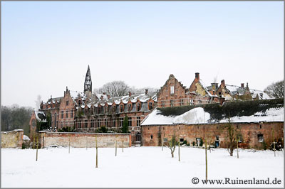 Auf der Weiterfahrt kamen wir in Aalst an einem weiteren Schlösschen vorbei, welches auf den ersten Blick verlassen wirkte. Doch die geschlossenen, dunkelgrünen Fensterläden des Kasteels van Muylem aus dem Jahr 1897 täuschten offensichtlich, da Post im Briefkasten und ein Schneemann im Garten eher für eine kurzzeitige Abwesenheit der Besitzer sprachen.