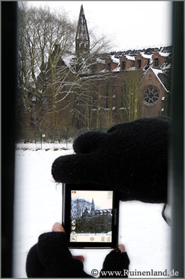 Auch dem nächsten Ziel widmeten wir nur einen kurzen Aufenthalt. Chateau Neufcour war eingerüstet und wurde gerade restauriert, so dass ich es lediglich mit einer Fernaufnahme würdigte. "Graue Kulisse vor grauem Hintergrund" war nun auch wirklich nicht so interessant und schien mir nicht lohnenswert genug, um dafür durch den Schnee über freies Feld zu laufen. Zumal auf dem Nachbargrundstück des Anwesens mit verschlossenem Haupttor Leute waren und wir es eh nicht unbemerkt hätten betreten können. Überhaupt meinte es das Wetter in den drei Tagen nicht wirklich gut mit uns. Der ständig nur graue Himmel ohne sichtbare Wolkenstrukturen war doch etwas frustrierend. Andererseits hatte ich auch keine Lust, die Fotos nachträglich bis zum Exzess zu bearbeiten und zu verfälschen, nur damit sie tolles Licht und einen imposanten Himmel aufweisen.