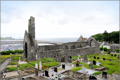 Den Hafen hinter uns gelassen, machten wir einen Abstecher zur Ruine der St. Mary's Church, die 1235 an der Stelle einer älteren Kirche aus dem 11. Jahrhundert erbaut und zwischen dem 14. und 16. Jahrhundert mehrfach umgestaltet wurde. Im Inneren befindet sich die Gruft von Christopher St. Lawrence, 13. Baron von Howth, der 1462 starb.