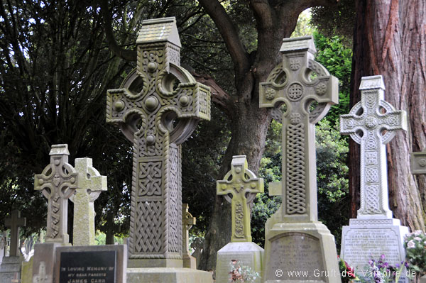 Mittlerweile war es Zeit für die Rückfahrt nach Dublin, denn mit dem Glasnevin Cemetery aus dem 19. Jahrhundert stand nun der größte Friedhof Irlands auf dem Programm. Da dieser recht außerhalb liegt und wir auf Anhieb keine Buslinie fanden, die in den Norden Dublins fuhr, nahmen wir nochmals ein Taxi. Bereits am Eingang reihten sich unzählige Kreuze und Statuen aneinander, was sich bis in den hintersten Winkel des Friedhofs fortsetzte. Wir verbrachten mehrere Stunden dort und ich machte mal wieder unzählige Fotos. Auch hier fanden sich mehrere herzförmige Grabsteine (siehe "Der kleine Vampir"), wenn auch nur neueren Datums.