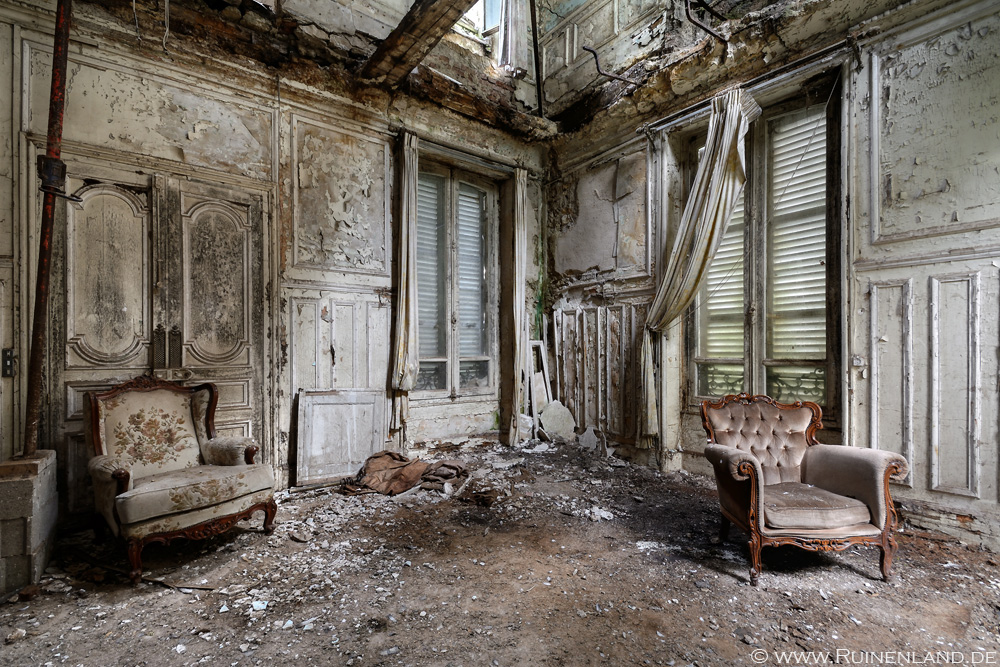 Noch vor Sonnenaufgang verließen wir das Areal und fuhren weiter zu einem verlassenen Schlösschen. Für das zum Teil bereits sehr zerfallene Anwesen interessierte sich offensichtlich schon seit etlichen Jahren niemand mehr. Schade um das einst schöne Gebäude.
