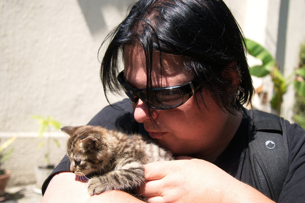 "Schmuse-Pause" mit Kätzchen auf einem Bauernhof) wieder zur Entspannung in