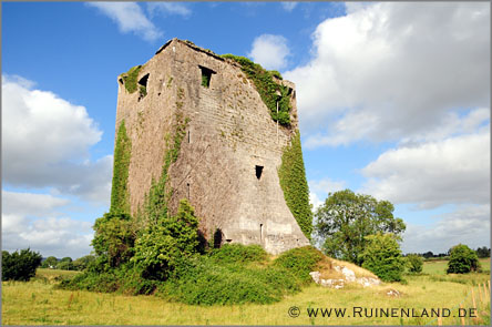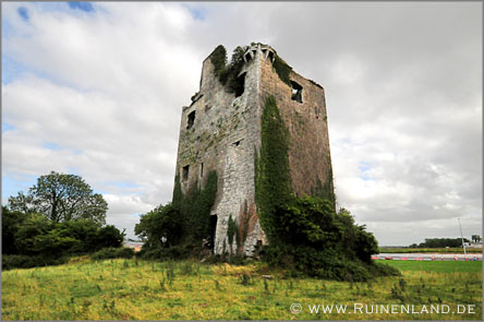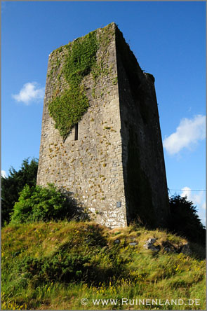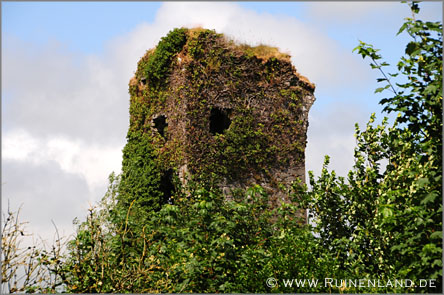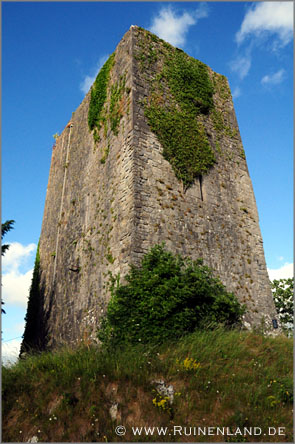 Nachdem wir das schwierigste Stück, die Fahrt durch die Großstadt Limerick, hinter uns gebracht hatten, stießen wir wenig später auf die Ruine des einstigen Tower Houses von Cratloemoyle Castle direkt am Straßenrand. Dank einer Baustelle konnten wir dort jedoch nicht parken, so dass wir uns rückseitig über "duftende" Weideflächen und Zäune bis zur Burg durchschlugen. Hierzu sei erwähnt, dass sich eine Vielzahl irischer Ruinen auf privaten Weideflächen befinden, es dort aber ganz normal ist, für deren Besichtigung Gatter und Zäune zu überklettern.