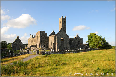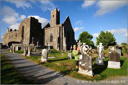Das nächste und gleichzeitig letzte Besichtigungsobjekt des heutigen Tages war zudem auch das schönste - die Ruinen der Quin Friary. Die Abtei, welche 1433 gegründet wurde, geht auf eine Burg mit ehemals vier starken Rundtürmen aus dem Jahr 1280 zurück. Diese lag bereits in Ruinen, als man die Quin Abbey auf ihren Mauern erbaute. Der letzte Mönch von Quin starb 1820 im Alter von 80 Jahren.