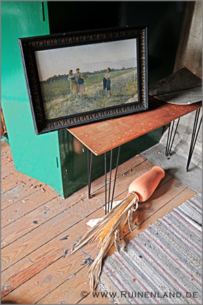 Wir fuhren Richtung Flughafen und besichtigten in dessen Nähe noch ein Haus im Wald, das Susanne ausfindig gemacht hatte. Zu unserer Überraschung fand sich im "Haus Christine" quasi keine Zerstörung, es sah einfach aus, als sei es vor Jahren verlassen und seinem Schicksal überlassen worden.