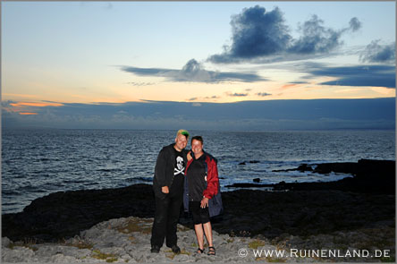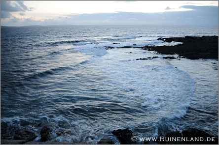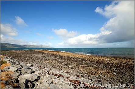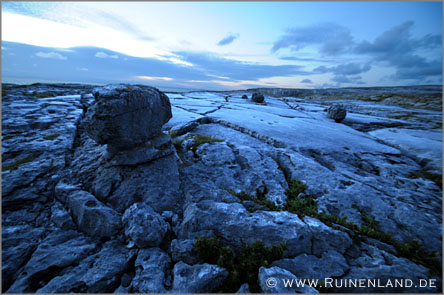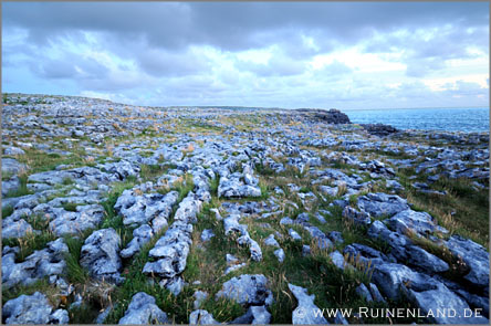 Anstatt des direkten und etwas kürzeren Weges fuhr ich abschließend nochmals zur nahe gelegenen Küste der felsigen Burren, in der Hoffnung, dort den Sonnenuntergang fotografieren zu können. Dies wurde mir wegen aufziehender Bewölkung leider zwar nicht ermöglicht, aber landschaftlich reizvoll war die Gegend allemal.