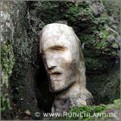 Geschnitzte Holzfigur in einem Astloch am Ballyallaban Ringfort