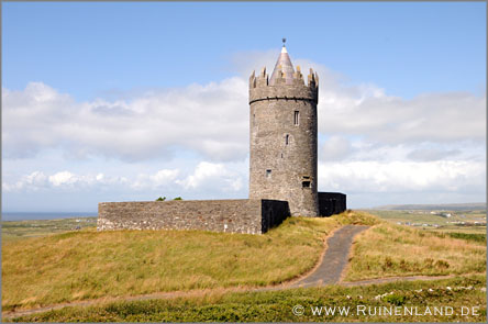 Vorbei am Doolin Castle ging es nun auf die Cliffs of Moher. Auf der Klippe nahe Hag’s Head an der Westküste des County Clare stand einst ein Steinfort, genannt Moher O’Ruan ("Ruan’s zerfallenes Fort"). Diese Landmarke gab den Klippen ihren Namen. Die acht Km langen und bis zu 214 m hohen Cliffs of Moher ist die bekannteste Steilküste Irlands, in ihrer Mitte steht der O'Brians Tower, ein Wach- und Aussichtsturm von 1835. 2008 wurden hier zudem Szenen für den Film "Harry Potter und der Halbblutprinz" gedreht.