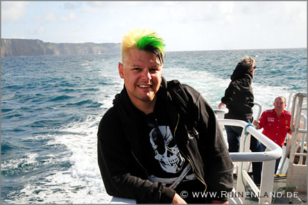 Im Eiltempo fuhren Birgit und ich daraufhin die 12 Km nach Doolin und erwischten um 17.00 Uhr gerade noch das letzte Schiff für diesen Tag, das zum Glück trotz der höheren Wellen fuhr. Es war ein überaus beeindruckendes Erlebnis und absolut traumhaft - wenngleich mein Magen dem eindeutig widersprechen würde! ;-) Immer wieder wurde das kleine Schiff vom Seegang nach oben gerissen, um mit einem heftigem Schlag zurück auf die Wasseroberfläche zu schlagen. Eine Achterbahnfahrt war nichts dagegen und eine Kreuzfahrt werde ich sicherlich nie machen!