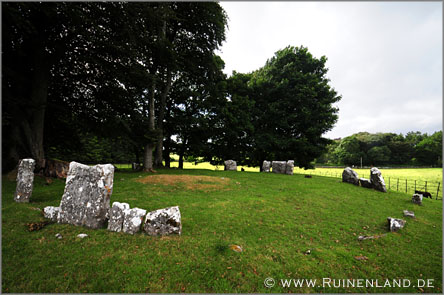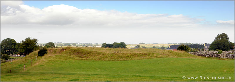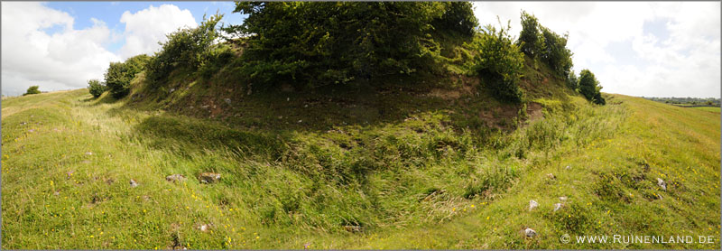 Wir fuhren weiter Richtung Norden. In der dortigen Gegend existieren in einem Umkreis von 10 Km gleich ganze 20 frühgeschichtliche Ringforts, von denen ich wenigsten ein paar besuchen wollte. Birgit fand diese "Ansammlung runder Erdhaufen" indes wenig spannend und blieb während meiner Erkundungen im Auto. Das erste Ringfort von Mirehill ist gleichzeitig das größte und am besten erhaltene. Der Graben zwischen dem äußeren Wall, auf dem einst schützende Holzpalisaden standen, und der inneren Motte (Burghügel aus Erde) war noch gut zu erkennen. Fast oben angekommen, sprang jedoch ein Pferd hinter den Büschen hervor, so dass ich meine Beine in die Hand nahm und schleunigst wieder hinter dem Zaun verschwand. Von drei weiteren Ringforts machte ich daraufhin lediglich Fernaufnahmen.