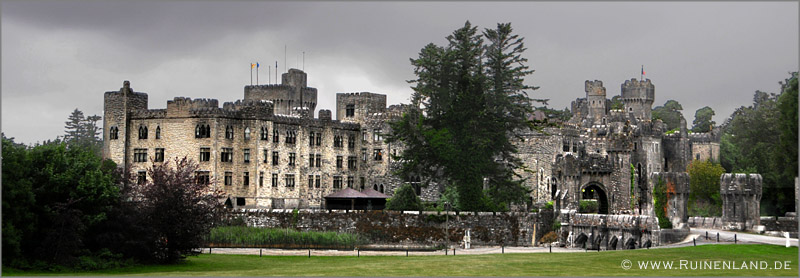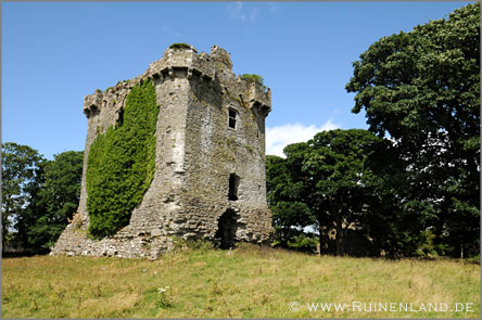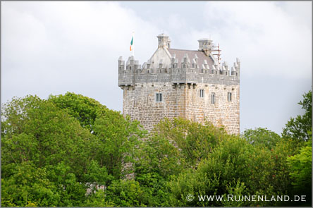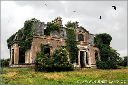 Von der Burg aus entdeckte ich auf der anderen Seite des Flusses durch die Bäume noch eine weitere Ruine, die es zu erkunden galt. Da vor dem Anwesen Bauarbeiten im Gange waren, stand das Tor glücklicherweise offen, so dass wir das Grundstück ungehindert betreten konnten. Cranmore House wurde 1838 von Alexander Lambert auf dem Grundbesitz von Oberst C.N. Knox erbaut. Als die Steuern zu hoch wurden, wurde es 1940er Jahre verlassen und verfiel zur Ruine.