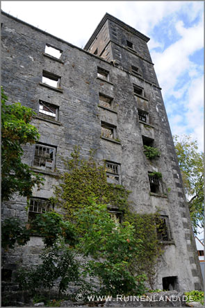 50 Km von Galway entfernt besichtigten wir in Ballinrobe die nördlichsten Ziele unserer Irland-Tour. Kalter Wind ließ reichlich ungemütliche Temperaturen aufkommen, als Birgit und ich vorbei an den Ruinen einer Kavallerie-Festung aus dem 18. Jahrhundert zu den Ruinen des Ballinrobe Castles liefen. Die von der Familie Bourke erbaute Burg wurde 1653 von der Familie Nolan gekauft und später von James Cuffet restauriert. Das Kriegsministerium erwarb Ballinrobe Castle 1821 und nutzte es als Kaserne. Leider waren die Ruinen mit einem Metalltor verschlossen. Um sie zu erkunden, hätten wir eine schmale Mauer entlang klettern müssen, neben der es rund 5 Meter in die Tiefe ging, zudem wäre dies den uns beobachtenden Anwohnern kaum entgangen. Deshalb blieben uns leider nur Außenaufnahmen.