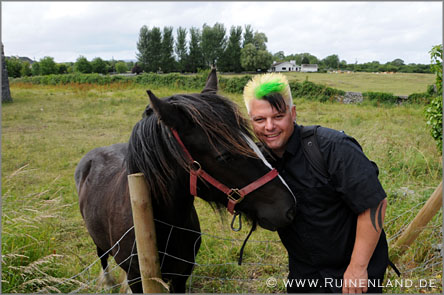 Ein letzter Stopp in Ballinrobe galt dem alten Friedhof, welcher der Bezeichnung "Gottesacker" jede Ehre machte. Die hinter dem Friedhof stehende Kirchenruine war jedoch nicht zugänglich und die umliegende Wiese wurde als Pferdekoppel genutzt. Während Birgit in meine Kamera lächelte, ließ sich das Pferd als Dank für Streicheleinheiten ihre Jacke schmecken. :-D