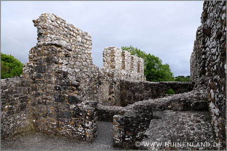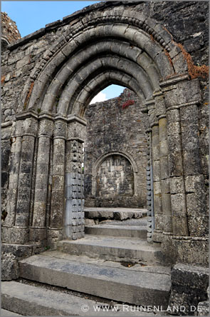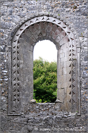 Bereits auf dem Rückweg nach Galway machten wir noch Halt in Annaghdown, das mit gleich zwei kleinen Kirchenruinen, einer Abteiruine und einer Burg aufwartete. Die Abtei bestand bereits Mitte des 12. Jahrhunderts und wurde im 15. Jahrhundert erweitert. 1798 entfernte man eines der schmuckvollen Fenster und baute es in die protestantische Kirche ein, die heute ebenfalls nur noch als Ruine existiert.