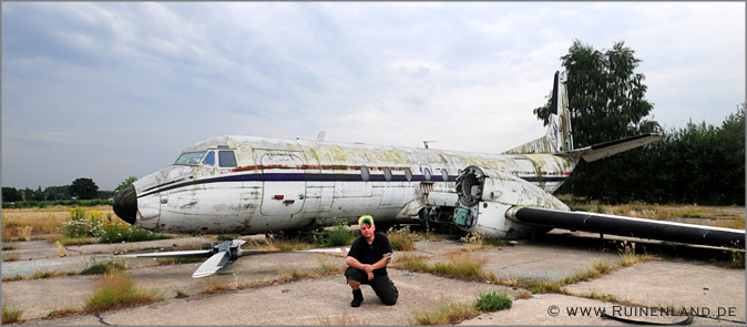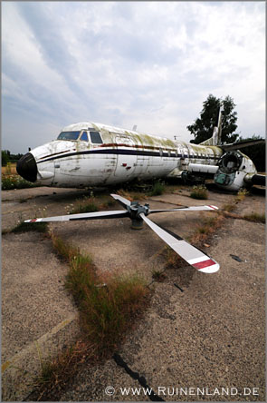 Nach zwei Fotostopps am Kasteel Exaierde (gänzlich entkernt) und dem Kesselhof (noch in Nutzung) fuhren wir über teils unbefestigte Nebensträßchen sowie durch kleine Dörfer in abgelegenes Gebiet, während dessen zwei weitere angedachte Lost Places wegen Unzugänglichkeit ausfielen. Am nächsten Ziel angekommen fand sich im hinteren Teil des Areals ein Loch unten im Zaun, allerdings so schmal, dass Miri und ich gerade so auf dem Bauch kriechend hindurch passten. Vorbei an vereinzelt noch genutzten Hallen liefen wir über das einsichtige Gelände, von dem mir kurz zuvor von einem ausrangierten Flugzeug berichtet wurde. In jedem Fall eine interessante und mal etwas andere Location. Dennoch ließen wir uns dort letztendlich viel zu wenig Zeit, um nicht das Risiko einzugehen, doch noch gesehen zu werden.