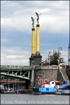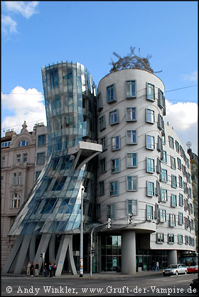 Nachdem ich etwas gegessen hatte, setzte ich mich ans Ufer und wusste nicht so recht etwas mit mir anzufangen. Ich durchstöberte meinen Reiseführer und entschied mich für die Festung Vysehrad, die ich ursprünglich für den nächsten Tag eingeplant hatte. Ich lief am Moldauufer entlang, vorbei am "tanzenden Haus", und lief, und lief. Dass ein paar Zentimeter auf der Karte derart weit sein können. Aber meine Oberschenkel waren eh noch zu dick, und die würden schließlich nicht abgesaugt (dachte ich zumindest...) ;-)