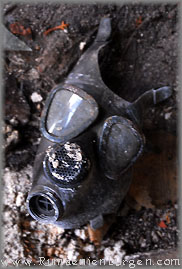 Wir wollten gerade fahren, als wir den Eingang zu einem Gewölbekeller entdeckten. Während alle anderen im Auto blieben, stieg ich noch mal aus, um mir diesen näher anzuschauen. Weit kam ich allerdings nicht. Am Eingang lagen mehrere Atemschutzmasken auf dem Boden und aus dem Keller drang ein derart beißender Geruch, dass ich nur mit vorgehaltener Hand ein paar Meter hinein gehen konnte, um überhaupt ein Foto zu schießen. Ob es hier irgendwann einen Chemieunfall gab oder man den Keller lediglich zur (illegalen?) Lagerung von Giftmüll nutzte, kann ich nicht beurteilen, jedenfalls hatte ich anschließend noch gut eine halbe Stunde lang einen chemisch-salzigen Geschmack im Mund. Wahrscheinlich habe ich mit diesem Kellerbesuch mein Krebsrisiko mal wieder um ein paar Prozent nach oben getrieben...