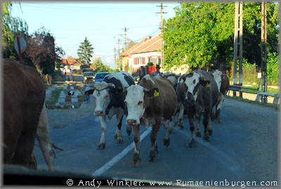 Aus dem Auto heraus schoss ich während der Fahrt Bilder der Kirchenburgen von Sacadate und Selimbar, bei Bradu (Gierelsau) machten wir eine Pause für Fotos der Karpaten, bis wir Sibiu (Hermannstadt) erreichten. Dort tankten wir den Wagen voll und gingen anschließend Essen & Getränke einkaufen. Am Eingang des "XXL-Penny-Market" wurde ich gebeten, meine Kameratasche abzugeben, wovon ich wenig begeistert war. Im Auto lassen wollte ich sie aber erst Recht nicht. So sah ich mich genötigt, den Mann darauf hinzuweisen, dass er bitte GUT auf meine Tasche aufpassen solle; das tat ich wohl sehr eindringlich, jedenfalls wich er meiner Tasche während meines gesamten Einkaufs nicht von der Seite ;-) Neben Lebensmitteln kaufte ich wie gewohnt auch wieder Futter für die Straßenhunde, wenngleich mir auf dieser Tour deutlich weniger, als in den letzten Jahren begegneten.