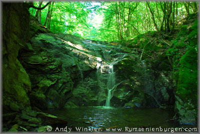 Wieder zurück am Auto zeigte uns Andreas noch einen unwesentlich tiefer gelegenen Wasserfall, den wir alleine höchstwahrscheinlich gar nicht bemerkt hätten. Ich nahm mein Stativ aus dem Kofferraum und stieg für Fotos hinab, was mir meine geschundenen Fersen aber nicht wirklich dankten.