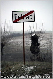 In Arad, eine, wie ich fand, überaus hässliche Stadt, folgte eine regelrechte Irrfahrt. Die Ausschilderung war auf den ersten Blick zwar gut, aber offensichtlich standen manche Schilder entweder an falscher Stelle oder zeigten in die falsche Richtung. Zweimal landete ich jedenfalls in einer Sackgasse. Irgendwann wusste ich gar nicht mehr wo ich war und fuhr einfach nach Gefühl in irgend eine Richtung. Mein Instinkt trog mich nicht und so erreichte ich schließlich Felnac, ein kleiner Ort im Südwesten Arad's, wo auf meiner Karte eine Ruine eingezeichnet war. Viel wusste ich nicht darüber, im Internet fand ich nur spärliche Informationen über die vermutete Datierung sowie über einstige Ausgrabungen. Nach erfolgloser Suche fragte ich im Dorf eine alte Frau nach dem Weg und zeigte ihr die Karte. Sie führte mich zu anderen Leuten und innerhalb kürzester Zeit hatte sich eine kleine, laut diskutierende Menschentraube um mich gebildet. Ich glaubte zu verstehen, dass dort nichts mehr stünde, war mir jedoch nicht sicher. Deshalb rief ich Attila an, erklärte ihm die Situation und reichte mein Handy an einen Dorfbewohner weiter. Dieser erklärte Attila schließlich, dass die von mir gesuchte Stelle etwa 4 Km vom Ort entfernt liegt, kein Weg dorthin führen würde und es quasi keine oberirdischen Mauerreste mehr gäbe. Och nö; bei Dämmerung so weit über einen Acker zu laufen, um dann doch nichts zu sehen - das musste ich nicht haben. Stattdessen legte ich auf der Rückfahrt nach Arad einen kurzen Fotostopp am Kloster nahe Bodrogu Nou ein, auf dessen Zufahrtsstraße beidseitig alle einhundert Meter Kreuze standen.
