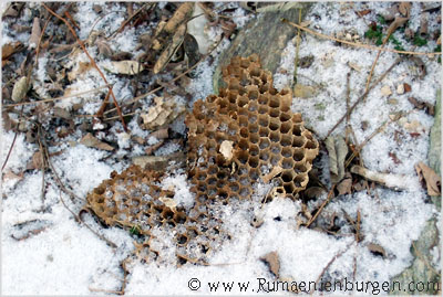 Nach etwa einer Stunde kamen wir in Zimbor an und parkten unterhalb des leer stehenden Schlosses Zsombory. Erbaut wurde es 1892, sein letzter Besitzer hieß Saulescu. Dieser verkaufte das Anwesen unlängst weiter, wie uns im Ort von einem älteren Herrn erzählt wurde. Vor einem Nebengebäude liefen Pfaue und Hühner durch den Schnee, durch die vergitterten Fenster des Schlosses konnte man noch die alten rotbraunen Kachelöfen sehen. Leider war lediglich der Keller zugänglich.