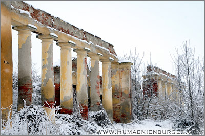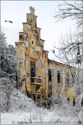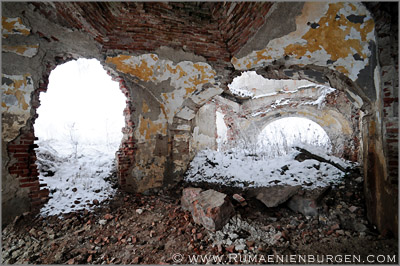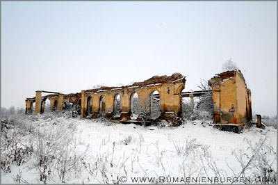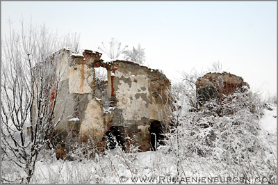 In Cisteiu de Mures (Thalmühl) hatte ich während der Reisevorbereitung eine Schlossruine mit mehreren Gebäuden ausfindig gemacht, die ich bislang noch nicht kannte. Das Haupthaus wurde um 1830 errichtet, während andere Teile, wie das Tor, die Kapelle und eine Scheune, aus dem 17. Jahrhundert stammen. Nach der "Nationalisierung" (= Enteignung) im Jahr 1948 wurde das Anwesen als Landwirtschaftsbetrieb genutzt, nach 1989 zerfiel es zur Ruine. Die abgeschiedene Lage sowie der schlechte bauliche Zustand werden es wohl auch zukünftig verhindern, dass die Ruinen von Touristen entdeckt werden.