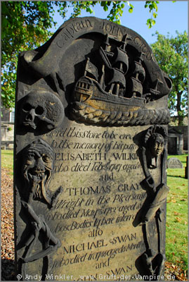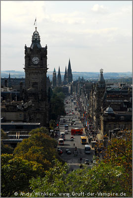 Durch die "Cockburn Street" und vorbei am gleichnamigem Hotel gingen wir zu einem kleinen Friedhof unweit der Waverly Station. Zwischen mit Gesichtern und Schädeln verzierten Gräbern ragte eine hohe Säule in den Himmel, der schönste Grabstein gleich oberhalb des Eingangs war jedoch jener eines Captains namens John Gray.