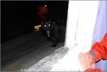 Wieder in Edinburgh kauften wir nach ein paar Fotoaufnahmen vom Castle bei unserem Inder Getränke für den nächsten Tag sowie Febreze für meine Schuhe. Als wir das Fenster unseres Zimmers öffneten, lief eine schwarze Katze übers Dach und schaute neugierig um die Ecke. Nach einem Foto mit Blitz verschwand sie jedoch schnell wieder.