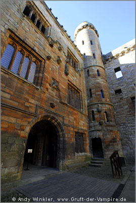 Als nächstes stand der Linlithgow Palace auf dem Programm. In dem weitläufigen Gemäuer, welches im 15. Jahrhundert auf den Ruinen einer älteren Vorgängerburg erbaut wurde, wurde 1542 Queen Mary of Scots geboren. Man erzählt sich von der geisterhaften Gestalt eines alten Mannes, welcher in langen, blauen Gewändern im Schloss umhergehen soll. Auch der blau gekleidete Geist von Margaret Tudor, Gattin von James IV., wurde hier in Aprilnächten mehrfach gesehen.