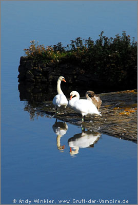 Als nächstes wollten wir zum Hopetoun House nahe Queensferry, um welches sich ebenfalls eine Spukgeschichte rankt. Der Bus dort hin fuhr jedoch erst in einer Stunde, so dass wir eine Pause am See einlegten. Einzelne Boote glitten lautlos über das Wasser, am Ufer putzten sich Schwäne, welche sich pittoresk auf der Oberfläche spiegelten. Eine sehr entspannende Stimmung.
