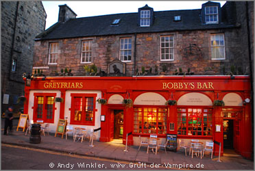 Schon jetzt hatte ich mit meiner Kameraausrüstung und den gekauften Büchern einiges zu schleppen; meine Schulter ächzte, als wir am Abend die Greyfrairs Kirk mit Churchyard erreichten - laut meinem Reiseführer einer der gruseligsten Orte Edinburghs. In der Kirche soll der Mackenzieh-Poltergeist sein Unwesen treiben und auf dem Friedhof soll unter anderem ein Hund spuken, dessen Herrchen hier einst begraben wurde.