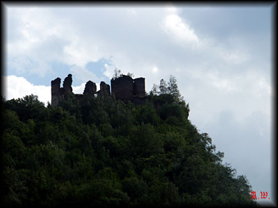 So sprachen wir ein Mädchen an und wollten uns nach dem Weg erkundigen. Sie sprach zwar kein Wort Deutsch oder Englisch, aber wir konnten uns trotzdem verständlich machen (nicht zuletzt, da Andrea ein wenig Italienisch konnte). Das Mädchen führte uns daraufhin zur Burg (erstmals urkundlich erwähnt Ende des 15. Jh.), wenngleich wir außer ein paar Brocken kaum etwas von dem verstanden, was sie uns unterwegs erzählte. Nach etwa 20 Minuten über steinige und verwilderte Pfade erreichten wir die Mauerreste von Cetatea de Colt - jene Burg, die einst Jules Verne besucht haben und von welcher er Inspirationen für sein Buch "Das Schloss in den Karpaten" erhalten haben soll.