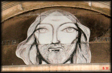 Eigentlich wollte Andrea in den Club "Hard ‘n Heavy", in dem sie 1995 auf einem Konzert war. Dieser Club existiert aber nicht mehr (zumindest nicht in der ursprünglichen Form), so dass wir mit Mirella (Andreas Bekannten) ein wenig durch die Stadt liefen und noch etwas trinken gingen. Die Hitze war in den letzten Tage nahezu unerträglich geworden, so dass ich 2x einen halben Liter fast auf ex austrank. Auf dem Rückweg zum Taxi-Platz entdeckte ich an einer Kirche noch eine Jesus-Zeichnung, die ich sofort fotografieren musste. Denn die Farbe war genau in den Mundwinkeln ausgewaschen, so dass es ein wenig danach aussah, als ob der Jesus Vampirzähne hätte *g*