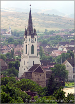 Vorbei an der Kirchenburg in Miercurea Sibiului (Reußmarkt) machten wir einen weiteren Fotostopp in Cristian (Großau). Die Rückseite der Kirchenburg bietet aus fotografischer Sicht ein perfektes Postkartenmotiv. Auf dem Dach eines Seitenturmes hingen wie Fliegen Männer an Seilen, welche das Dach reparierten und vor der Kirchenburg saßen Störche in ihren Nestern. Alles in allem eine schon fast unwirklich anmutende Kulisse. Überhaupt sieht man in Transsilvanien (Siebenbürgen) nahezu in jedem zweiten Dorf mindestens ein Storchennest - und nur selten ist es unbesetzt.