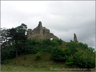 Im Anschluss an einen kurzen Fotostopp beim kleinen ehemaligen Schloss in Haghigh, welches noch heute bewohnt ist, bog ich dort rechts nach Feldioara (Marienburg) ab. Die Randbezirke mit ihren Wohnblocks sind nicht gerade schön, entstanden jedoch einst aufgrund der dortigen Minen und Industrie. Im alten Ortskern finden sich heute dagegen gleich drei Wehrbauten: Die Kirchenburg, die Ruinenreste der Marienburg im Ort sowie die wenig außerhalb liegende Ruine der so genannten "Ur-Marienburg" (einst lediglich das Vorwerk zur eigentlichen Marienburg, von welcher heute allerdings kaum mehr etwas steht und deren Mauerreste zudem meist in Privatgrundstücke eingebunden sind). Von der Kirchenburg aus führt ein Fahrweg bis unter die sehenswerte Ruine der "Ur-Marienburg", bei gutem Wetter auch ein schöner Platz für ein Picknick. Mehrere Mauerreste auf beiden Seiten, ein Turmrest, Durchgänge und die Ruinen der einstigen Toranlage sind noch zu sehen. Zudem blickt man vom Burgberg genau auf die Kirchenburg von Feldioara und auf die Mauerreste der Marienburg.