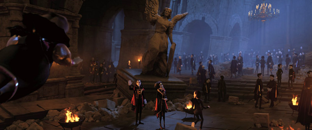 Die einzelnen Orte, wie z. B. das Burghotel oder die Gruft, sind optisch sehr gelungen. Auch die Kleidung und das "Styling" der Figuren mag ich sehr. Wenn auch nicht ganz mit "high budget - Produktionen" vergleichbar, vergisst man vereinzelt beim "Kameraflug" über die Landschaften fast, dass es sich um eine Animation handelt.