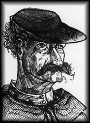 gaben ihnen einen drohenden Ausdruck. Er trug einen Schnurrbart. Breit