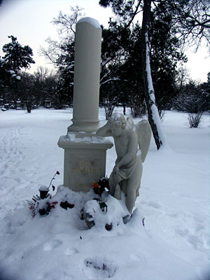 Als ich das Friedhofstor erreichte, war es merkwürdig still. Der Friedhof selbst bot ein fast schon unwirkliches, wenngleich wunderschönes Bild. Der Boden war hoch mit dichtem Schnee bedeckt, auf dem in den kleinen Seitenwegen offensichtlich bereits seit Tagen niemand mehr gegangen war. Noch heute befinden sich über 6000 Grabmale auf dem Friedhof; allesamt aus sandfarbenem Stein und wie gemalt von Schnee umgeben. Unzählige Bäume und Büsche bogen sich unter dem Gewicht des Schnees, deren feine Äste so über jedem Weg ein eigenes Tunnelgewölbe bildeten. Immer wieder verließ ich den etwas breiteren und als einzig vom Schnee befreiten Hauptweg, um dieses Bild zu genießen, während diverse Engelsstatuen auf mich nieder blickten. Nach kurzer Zeit erreichte ich das berühmte Mozart-Grab, an dem auch der schneebefreite Weg endete. Einst wurde Mozart hier in einem Armengrab (Gemeinschaftsgrab) beigesetzt. Der heutige Gedenkstein befindet sich an der wahrscheinlichen Stelle seiner Grabstätte.