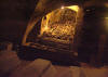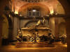 Wohl nur wenige würden es beim Schreiten auf den Bodenplatten des Stephansdomes vermuten, dass sich unter ihren Füssen eine Welt der Toten befindet. Im linken Seitenschiff befindet sich der Eingang in diese düstere Unterwelt (nur mit Führungen zu besichtigen, 4 Euro). Als ich auf die nächste Führung wartete, füllte sich der Treffpunkt zu meinem Missfallen immer mehr, was letztendlich dazu führte, dass rund 35 Personen am Rundgang durch die engen Katakomben teilnahmen. Wie sich wohl jeder vorstellen kann, ließ diese Menschenmasse in den verzweigten feuchten Gängen kaum die entsprechende Stimmung von Tod und Vergänglichkeit aufkommen. Aber auch sonst hätte sich dieses Empfinden bei mir wohl nur an den wenigsten Stellen entwickelt. Denn nach dem Abstieg gelangte man zwar zuerst in den ältesten Teil der Katakomben; dieser wurde jedoch komplett renoviert und im Rahmen dessen mit weißem Verputz und Neonlampen versehen. In keinem Fall etwas, was ich mit dem Begriff „Katakomben“ verbinden würde. Nach dem Durchschreiten einer unterirdischen Kapelle kamen wir in eine Gruft, in der sich mehrere verschlossene Kupfersärge mit den Leichnahmen von Bischöfen und Kupfergefäße befanden. Die Metallgefäße, die teils mit Kreuzen und Totenschädeln verziert waren, enthielten die Eingeweide der Habsburger (es war in Wien Brauch, die Körper der Verstorbenen zu leeren und die Innereien eingelegt in Alkohol separat zu bestatten. Die Körper der Habsburger wurden in der Kaisergruft beigesetzt). Nach einem kurzen Stopp in jener (ebenfalls neu renovierten) Gruft, in welcher die Domherren und Bischöfe hinter roten Marmorplatten bestattet sind, begaben wir uns in den zwar später erbauten, jedoch in meinen Augen weitaus interessanteren Teil der Katakomben: dunkle Gänge mit modriger Luft führten weiter ins Erdinnere bis in einen hoch gewölbten Raum, in welchem sich ein vergittertes Fenster befand. Dahinter standen verfallene Särge und aufgeschichtete Knochen, stark zerfallene Schädel starrten mich fratzengleich an. Hier löste ich mich von der Führungs-Gruppe und trottete ihr nur langsam hinterher, um zumindest den weitaus düstereren Teil der Katakomben in Ruhe anschauen zu können. Es folgten weitere Räume, die bis obenhin mit menschlichen Gebeinen angefüllt waren – ein Resultat aus vergangenen „Aufräumarbeiten“.