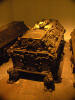 Nach einer kurzen Kirchenführung stiegen wir in die Gruft hinab, von der ich sofort mehr als angetan war. So stellte ich mir eine Gruft vor; kühl, dunkel, staubig, modrig und alt. Und inmitten unzählige, teils geöffnete Särge mit Skeletten, deren hohle Schädel jeden Besucher aus leeren Augenhöhlen zu beobachten schienen. An den Wänden standen auf Vorsprüngen Totenschädel auf gekreuzten Knochen, so auch auf manchem Sargdeckel. Einer dieser Schädel hatte am Unterkiefer Mineralablagerungen, die im Licht meiner Taschenlampe förmlich glitzerten. Selbst von den Särgen war ein jeder einzigartig: Es entsprach der Mentalität des 17. und 18. Jahrhunderts, sich den eigenen Sarg schon vor dem Ableben anfertigen zu lassen. Hierbei wurden die Särge nach Vorstellung des Besitzers meist mit Bauernmalerei und „Vergänglichkeits-Symbolen“ (hauptsächlich Gebeine, Sanduhren, abgebrochene Lebenskerzen und sakrale Motive) verziert. Zum Großteil wurden die Särge zu Lebzeiten der Besitzer nicht einfach auf dem Dachboden abgestellt, sondern als Möbelstück verwendet; so z. B. über eingelegte Bretter als Regal oder Kleiderschrank. Die Malereien waren in überraschend guter Erhaltung vor allem noch an den Seitenteilen der Särge zu bewundern (auf den Deckeln wurden sie größtenteils durch Staub zerstört).