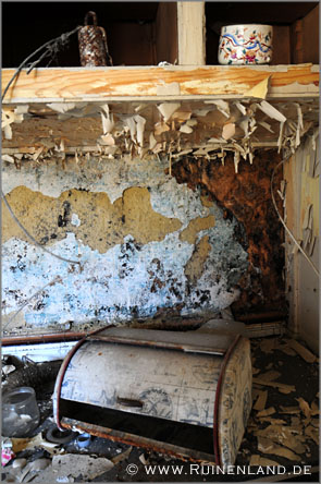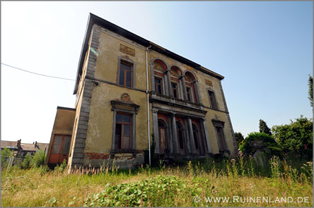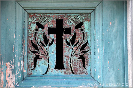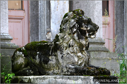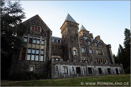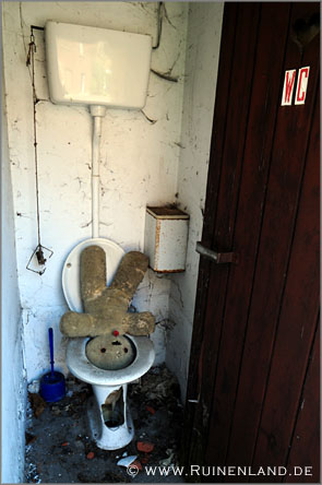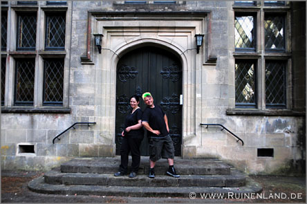 Um in das letzte Schloss zu gelangen, hätten wir seitlich über den Balkon klettern müssen, eine überaus wacklige und brüchige Angelegenheit, die uns zu mühselig und zu riskant erschien. Genutzt hätte es uns auch wenig, da dort alle bislang offenen Fenster inzwischen vernagelt waren. So machten wir nur noch ein Abschlussfoto und traten die Heimreise an.
