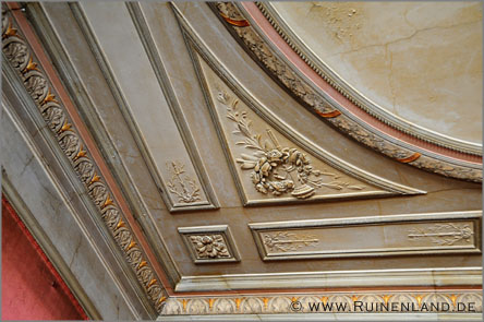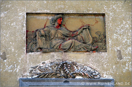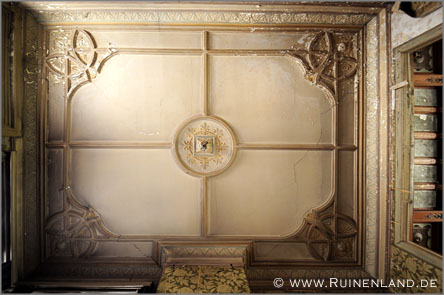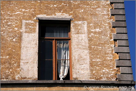 In den Hallen selbst gab es nicht mehr viel zu sehen, die meisten von ihnen waren bis auf wenige Dinge leer. Sehr gefallen haben mir jedoch die Stuckdecken, verzierten Tapeten, Reste eines Kamins und schmuckvollen Holz-Ornamente in der noblen Fabrikantenwohnung. Ein dazu passendes Bild erzeugten die wehenden Vorhänge an den zerbrochenen Fenstern.