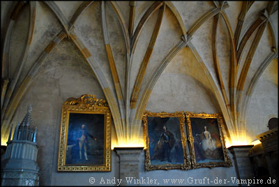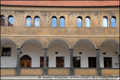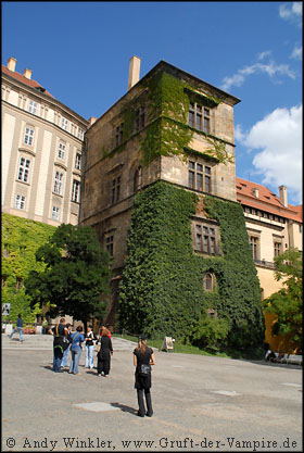In der Krypta der Burg sind u.a. die vier Ehefrauen von Kaiser Karl IV bestattet. Man sagt, ihre Geister wandeln nachts eifersüchtig kämpfend durch die endlosen Gänge, auf der Suche nach einem letzten Blick auf ihren Ehemann.