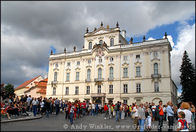 Diese wollte ich nun auch endlich sehen, immerhin handelt es sich laut Reiseführer beim Prager Hradschin mit einer Länge von 570 Metern um die größte altertümliche Burganlage der Welt. Ihre Geschichte begann bereits im 9. Jahrhundert, im 11. Jahrhundert wurde sie zur romanischen Fürstenburg ausgebaut und später zum Königssitz. 1541 fiel die Burg dem großen Prager Stadtbrand zum Opfer, wurde anschließend aber wieder aufgebaut.