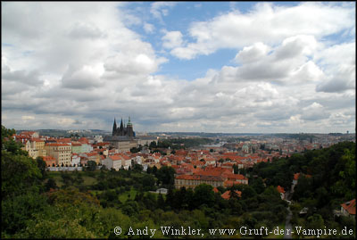 Blick von der Burg auf die Karlsbrücke (Karluv most) und das Kloster Strahov