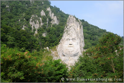 Wir verließen Baile Herculane am frühen Morgen. Unsere heutige Tour führte uns an der Donau entlang und auch das Wetter war zur Abwechslung mal wieder auf unserer Seite. Nach einem Fotostopp in Orsova (dt. Orschowa) an der Stelle der überfluteten Festung Ada Kaleh ging es nur langsam voran, da sich vor uns ein Baustellenfahrzeug im Zeitlupentempo den Berg hinauf quälte. So dauerte etwas länger, bis wir das Monument des Daker-Königs Decebal bei Dubova erreichten. Ein Mann bot mir dort eine Schifffahrt auf der Donau an, aber ich lehnte dankend ab, zumal wir hierfür gar keine Zeit gehabt hätten.