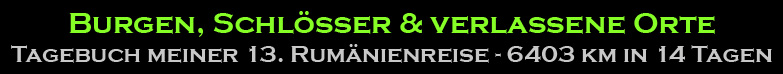 Die Planung der Reise fiel mir zugegebenermaßen nicht ganz einfach, dafür warten in Rumänien schlichtweg noch zu viele Orte, die ich gerne selbst einmal sehen und fotografieren möchte. Und mit jeder Recherche kommen weitere hinzu. Also hieß es erneut, Schwerpunkte zu setzen und eine Auswahl zu treffen, wobei ich mich diesmal nicht auf landschaftliche Schönheiten, sondern in erster Linie auf eine Mischung aus Burgruinen und verlassenen Orten konzentriert habe. Begleitet hat mich auf dieser Tour Susanne, eine Freundin aus alten Burgen-Exkursions-Zeiten.